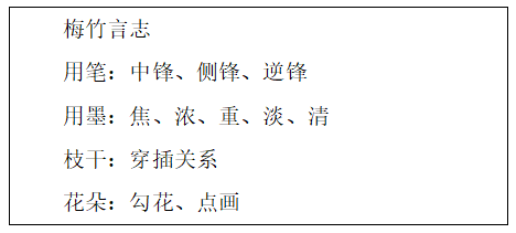 (1)重点:掌握中国画种梅、竹用笔用墨的方法,理解构图的方式。