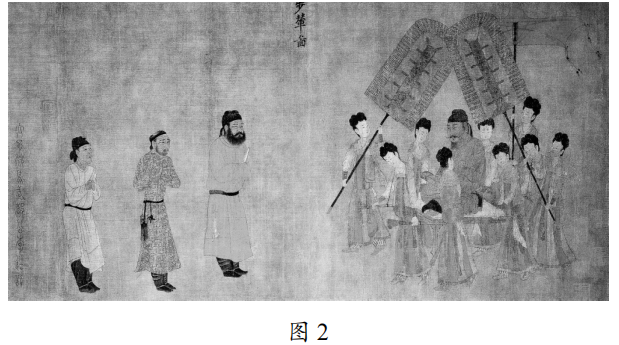 如图2所示,唐代画家阎立本所作的《步辇图》(局部)中人物形象大小区别的原因是( )。