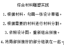 教学重点:运用综合材料制作-一个造型美观,构思立意新颖的雕塑作品。
