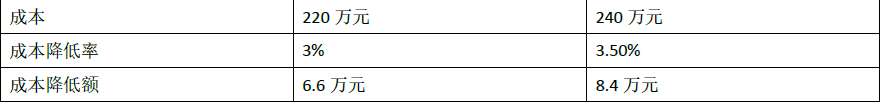 某项目施工成本数如下。应用差额计算法分析,该项目成本降低率提高对于成本降低额的影响是( )万元。