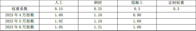 某施工项目投标截止日期为2023年5月1日,施工合同约定工程价款结算时采用价格指数法调整,人工、钢材、混凝土等权重系数及
