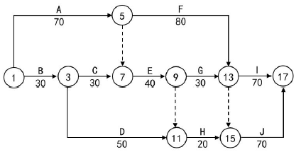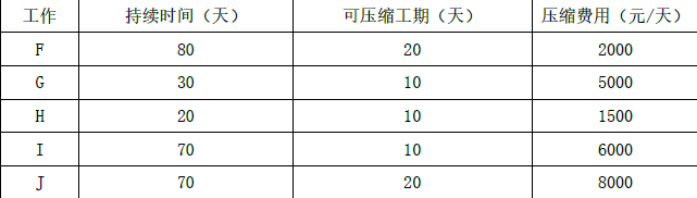 为获取提前竣工奖励,总承包单位确定了五项可压缩持续时间的工作F、G、H、I、J,并测算了相应增加的费用,见下表。