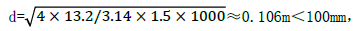 ,故设计配水管直径100mm 不符合要求。