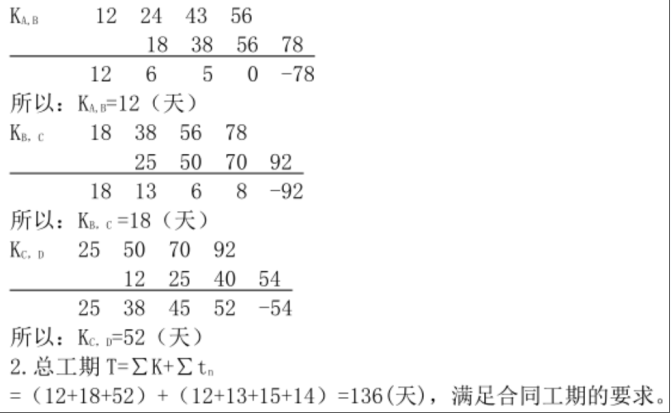 根据上表数据,按照累加数列错位相减取大差法,确定流水步距:
