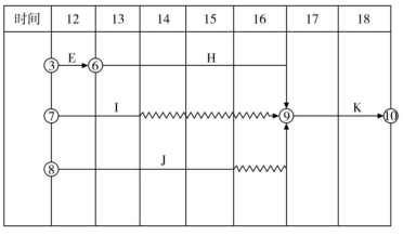 2)11 月底检查结果:工作 E 进度滞后一个月,工作 I 进度与原计划一致,工作 J 进度滞后三个月。