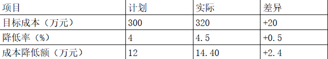 某月的实际成本降低额比目标值提高了2.4万元,根据下表用差额分析法分析目标成本和成本降低率对成本降低额的影响程度。