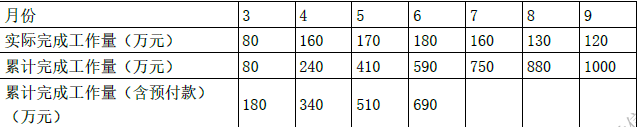 (4)工程款按月支付,工程款达到合同总造价的90%时停止支付,余款待工程结算完成并扣除保修金后一次性支付。每月完成的工作量如下: