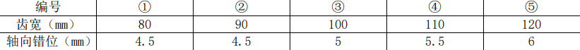 (2)表中①、④、⑤圆柱齿轮副轴向错位不符合要求。齿宽 B≤100mm 时,轴向错位应≤5%B;齿宽 B>100mm 时,轴向错位应≤5mm。
