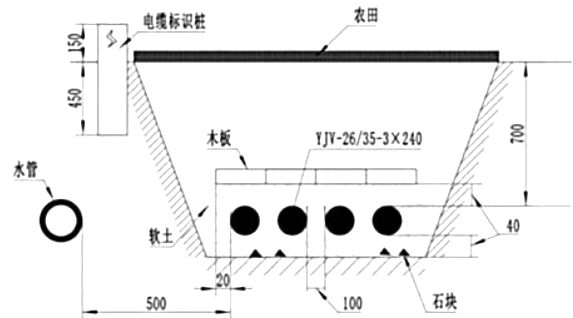 4)电缆上面和下面有 40mm 软土错误,