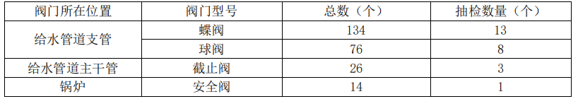 蝶阀应抽检 14 个,截止阀与安全阀应逐一检验,截止阀检验 26 个,安全阀检验 14 个。