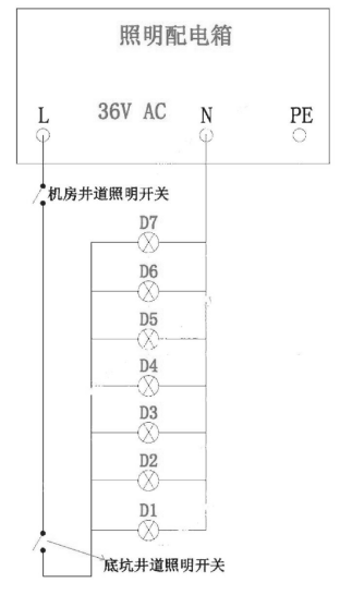 ②井道底部的照明灯距离最低点为1m,超过了0.5m;