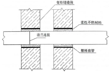 1.存在的错误:(1)采用塑料套管,应采用钢制套管;(2)套管内不能进行法兰连接;(3)管道穿越变形缝墙体处应设置补偿装置。