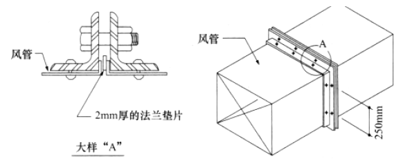 理由:按《通风与空调工程施工质量验收规范》GB50243一2016的规定,排烟风管法兰连接的垫片厚度不应小于3mm;且排烟风管属于中压系统,中压系统矩形风管法兰螺栓的间距应小于等于150mm。