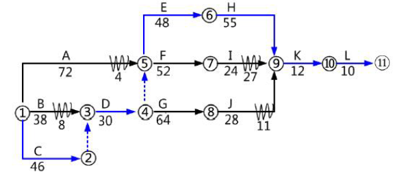 (1)关键线路:C→D→E→H→K→L。