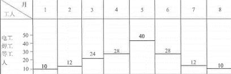 计划调整后的LED 点源灯安装两个月,每月的平均人数应为24 人,LED 投光灯安装还是两个月,每月平均还是12 人。据以上分析得出:4 月为12+12=24 人;5 月为12+24+12=48 人;6 月为24 人。