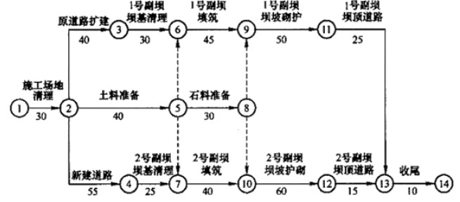 (2)除了该题目中的进度表达方法以外还包括:横道图、施工进度管理控制曲线、形象进度图、双代号时标网路图。