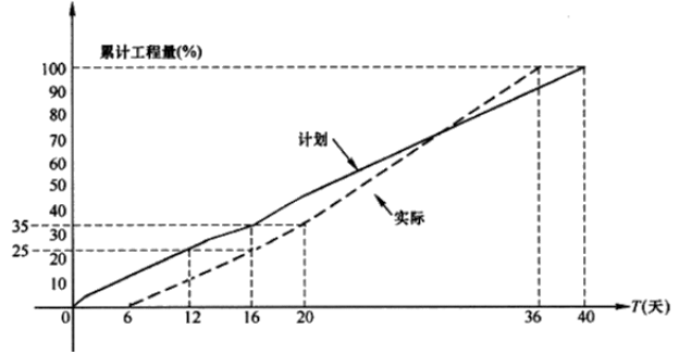 4.2 号副坝填筑第 16 天末计划进度为 35%,实际进度为 25%,累计工程量拖延 10%,进度滞后 4天,实际用工 30 天。