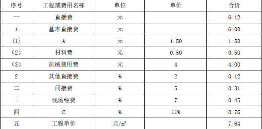 2.A 代表的费用名称:人工费;B 代表的费用名称:企业利润;C 代表的费用名称:税金。
