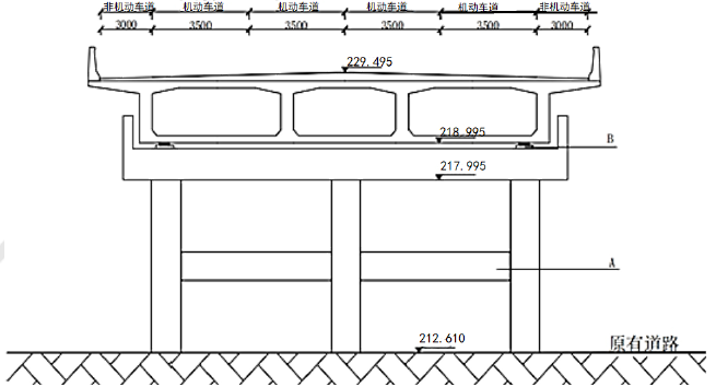 1.A:系梁,B:垫石。
