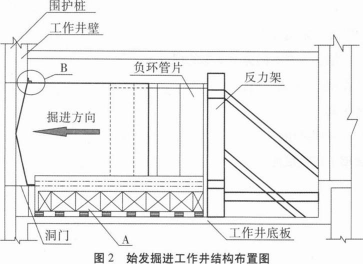 (2)B:洞门密封,作用是洞门止水,防止始发过程地下水涌人工作井。