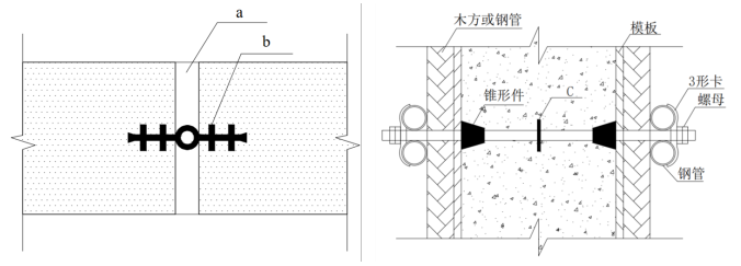 1.a:嵌缝材料;b:中埋式橡胶止水带;c:止水环;