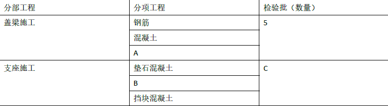 开工前,项目部对该桥梁划分了相应的分部、分项工程与检验批,其中划分后的部分分部工程、分项工程及检验批如下表所示。