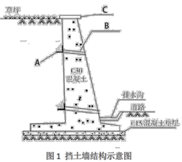 A:反滤层;B:泄水孔;C:混凝土压顶石(帽石)。