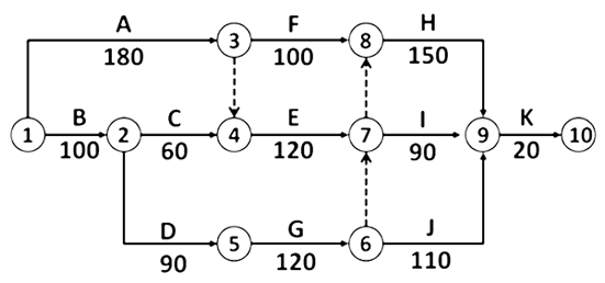 1、(1)网络计划工期是480天。(2)关键线路为:①→②→⑤→⑥→⑦→⑧→⑨→⑩(或B→D→G→H→K)