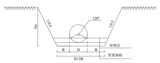 (2)沟槽顶部开挖宽度为:1.8+5×0.5×2=6.8m。