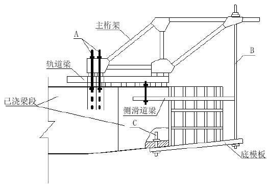 (3)挂篮还应具备的主要性能有:稳定性、锚固方便可靠、重量不大于设计规定。