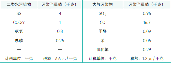 (7)该公司当月的污染物排放情况如下:二类水污染物SS、CODcr、氨氮、总磷排放量分别为200千克,大气污染物SO2、CO、甲醛、苯、硫化氢排放量分别为:100千克、100千克、50千克、80千克、120千克,对应的污染当量值及环境保护税单位税额如下表所示: