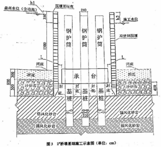 5.h1围堰顶面高程要高出施工期间最高水位(含浪高)0.5~0.7米。
