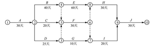 1.该网络的计划工期190天。工作D的最迟结束时间是第100天,关键线路A→B→E→H→J。