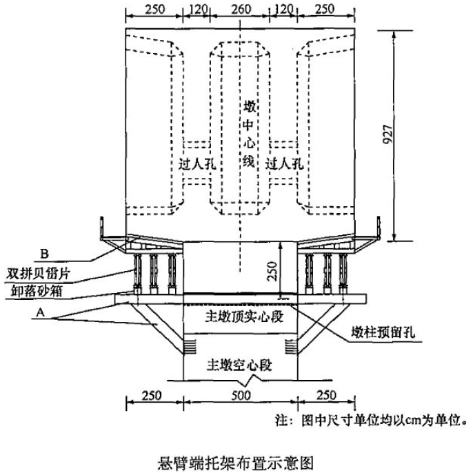 (1)A是悬臂端托架,B是悬臂端底模板。