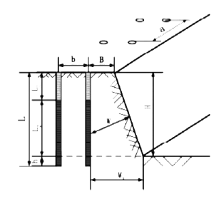 4.a—孔间距;W—最小抵抗线;H—台阶高度;L1—堵塞长度。