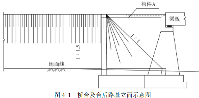 案例题 某公司承建一项路桥结合三级公路工程。桥台设计为重力式 U 型结构,基础采用扩大基础。持力 层位于砂质黏土层,地层中有少量潜水;台后路基平均填土高度大于 5m。场地地质自上而下分别为腐 殖土层、粉质黏土层、砂质黏土层、砂卵石层等。桥台及台后路基立面和路基典型横断面及路基压实 度分区如图所示。