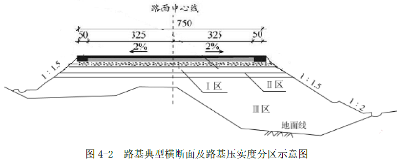 ①路床顶面以下 80cm 范围内为Ⅰ区;②路床顶面以下 80cm~150cm 范围内为Ⅱ区;③路床顶面以下大于 150cm 为Ⅲ区。