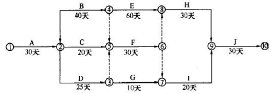 1.计划工期为 190 天。D 工作的最迟结束时间为第 100 天。关键线路是①→②→④→⑧→⑨→⑩(或A→B→E→H→J)。