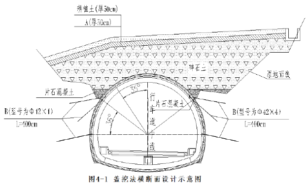 (3)A为黏土,作用:隔水;B为锁脚锚杆,作用:控制护拱变形,加固围岩。