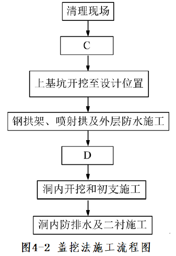 (4)C为测量放线及周边截、排水设施施工,D为回填土。