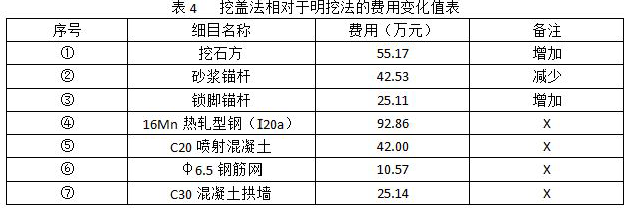 (6)④16Mn热轧型钢(Ⅰ20a)是增加,⑤C20喷射混凝土是增加,⑥φ6.5钢筋网是增加,⑦C30混凝土拱墙是减少。费用合计是55.17-42.53+25.11+92.86+42.00+10.57-25.14=158.04万元。