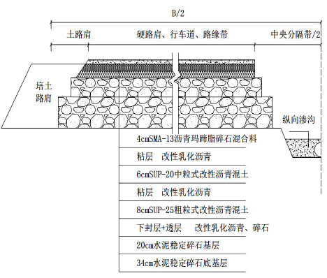 主要工程内容有:水稳底基层、水稳基层、沥青混凝土面层及路面排水等,路面结构如图1-1 所示。