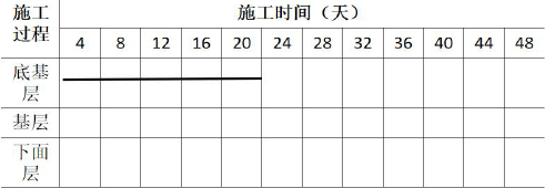 4.根据事件四中的已知条件,计算K20+000~K25+000 段路面施工工期(单位:天),复制图1-2 到专用答题卡上,并完善基层与下面层的横道图。