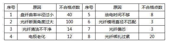 6.接续不合格原因排列表: