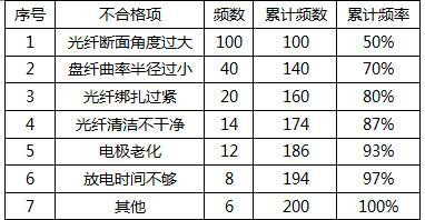 接续不合格原因排列图:
