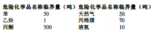 某大型化学品存储企业,分库存储不同的危险化学品。其存储的危险化学品临界量如下表: