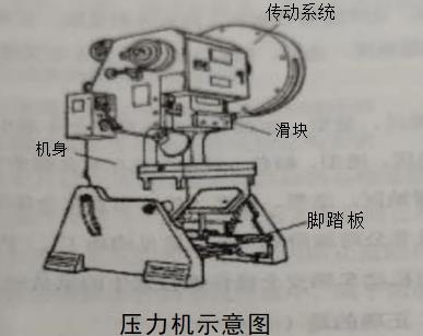 压力机危险性较大,其作业区应安置安全保护装置、安全保护控制装置等,以保障暴露于危险区的人员安全。某单位对下图所示压力机进
