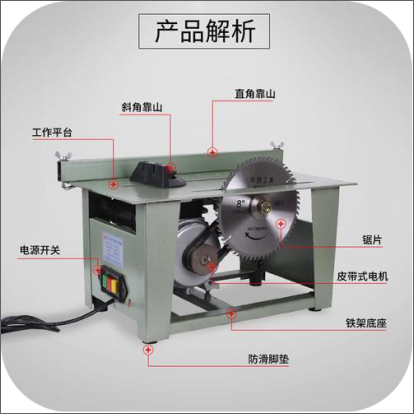 木工圆锯机一般用于木材切割作业,以下图所示木工圆锯机为例检查中发现下列问题,下列说法正确的是( )。