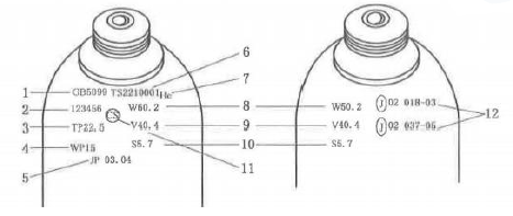 B 制造商代码、生产日期;气瓶容积(L)