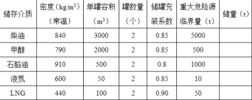 该项目没有储罐区,包括柴油储罐、甲醇储罐、石脑油储罐、液氨储罐、LNG储罐等,每种物料构成独立的储罐区,储罐区物料信息见下表。